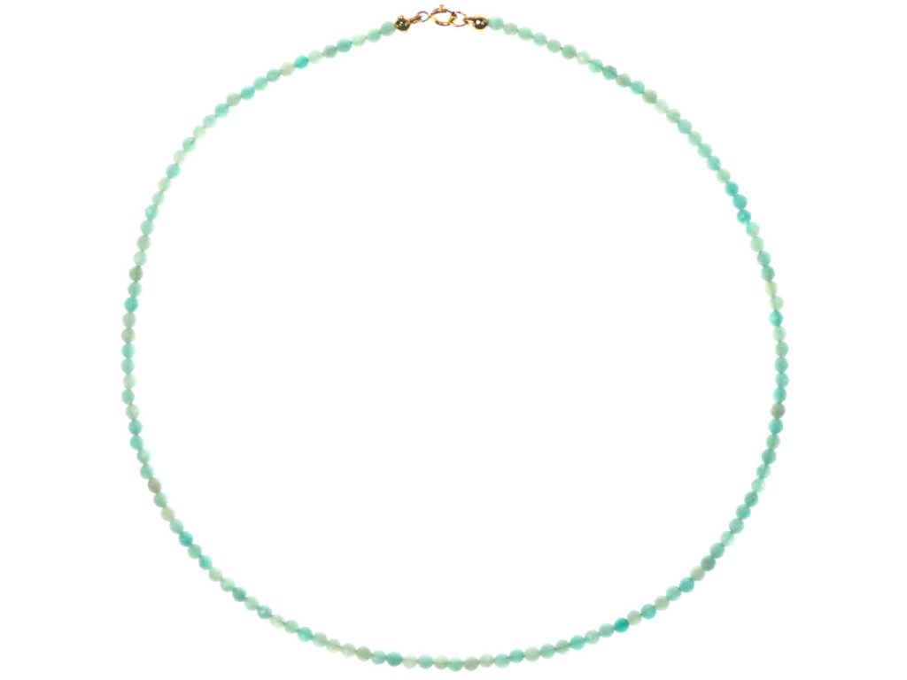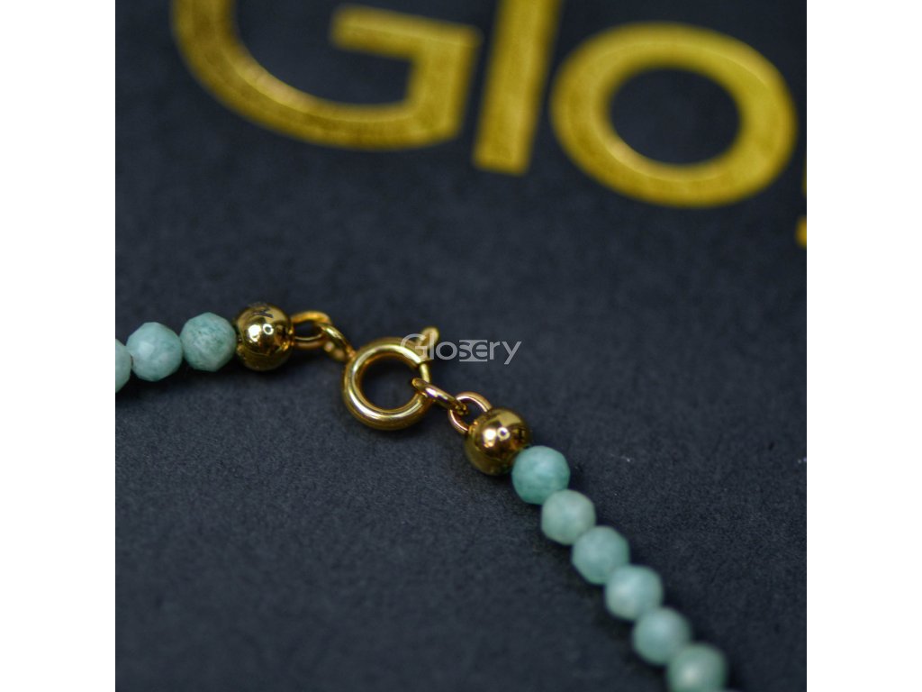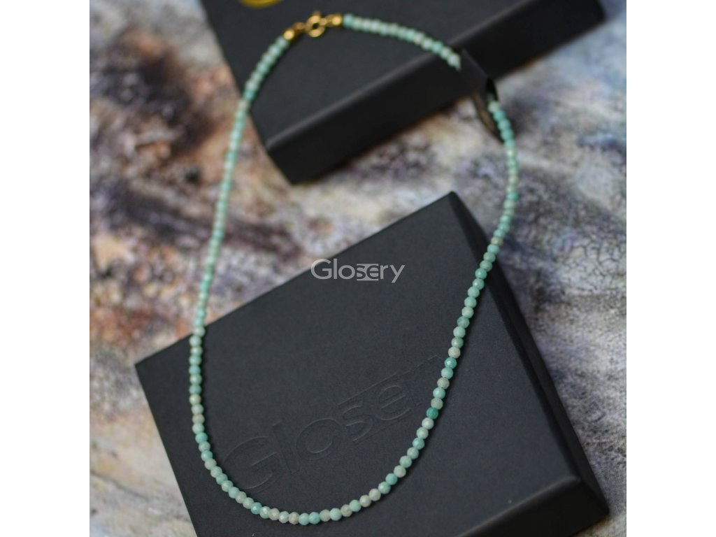 Elegantný dámsky minimalistický náhrdelník Glosery, vyskladaný z prírodného modrého amazonitu vo fazetovanom výbruse, veľkosti 3mm. Náhrdelník pôsobí sviežo a nadčasovo.