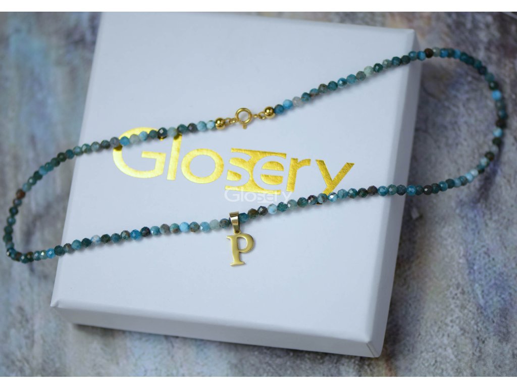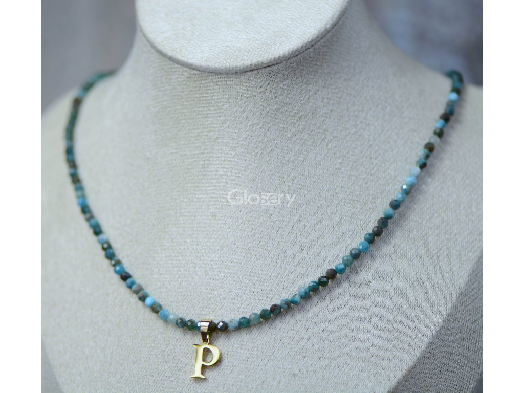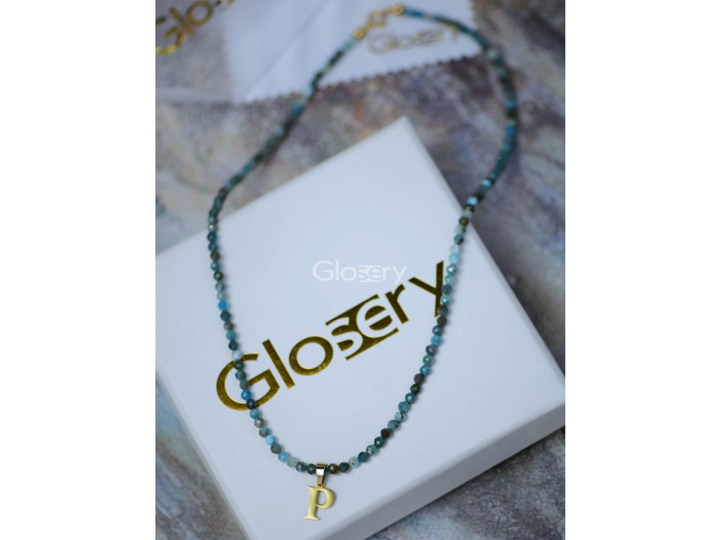 Elegantný dámsky minimalistický náhrdelník Glosery, vyskladaný z prírodných minerálnych kameňov vo fazetovanom výbruse, veľkosti 3 mm. Náhrdelník zdobí iniciála od A-Z v dvoch farebných prevedeniach.
