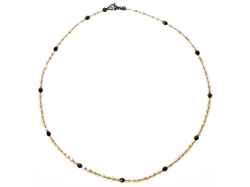 Elegantný dámsky náhrdelník Glosery je kompletne vyskladaný zo žiarivých krištáľov od Swarovski® v kombinácii zlatých a čiernych krištáľov. Tieto krištále zaručujú oslnivý lesk. Náhrdelník je na pohodlné zapínanie, ktoré zaručí dokonalé uchytenie a komfort pri každodennom nosení.