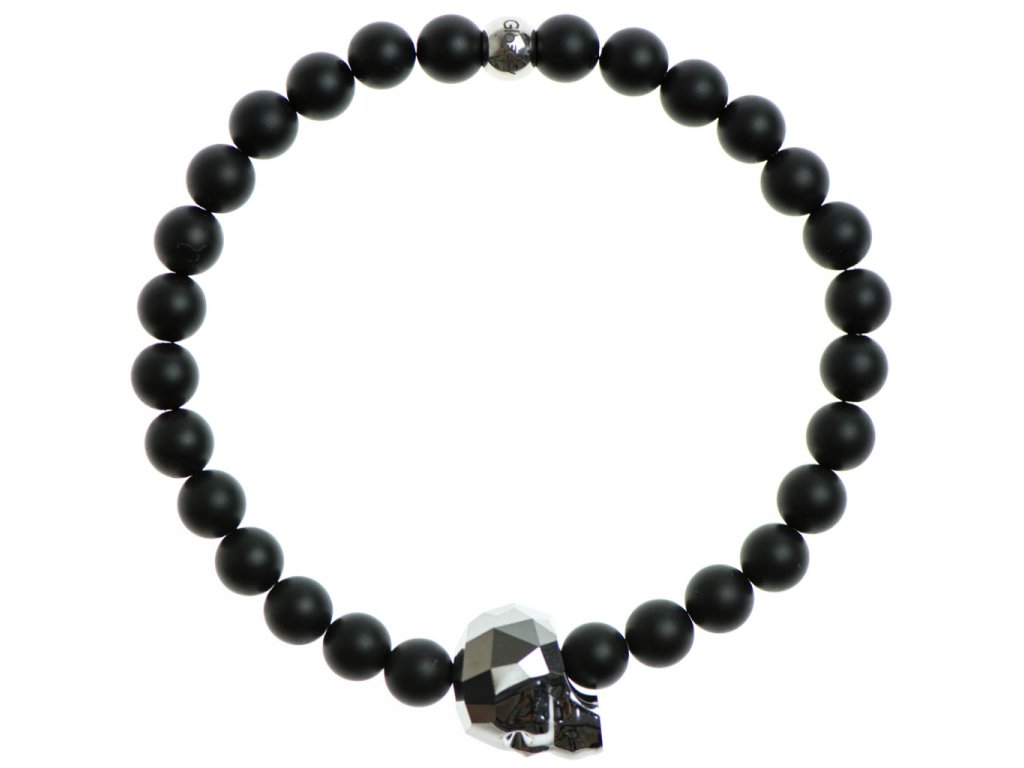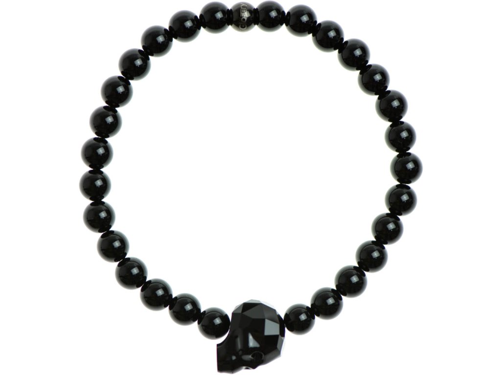 Glosery náramok s lesknúcim krištáľom v tvare lebky od Swarovski®, lesklý / matný čierny achát 6-8mm