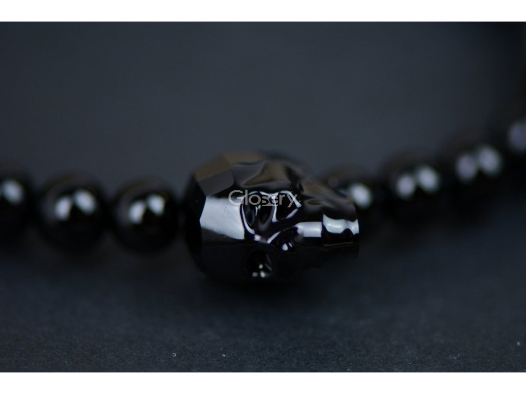 Glosery náramok s lesknúcim krištáľom v tvare lebky, lesklý / matný čierny achát 6-8mm