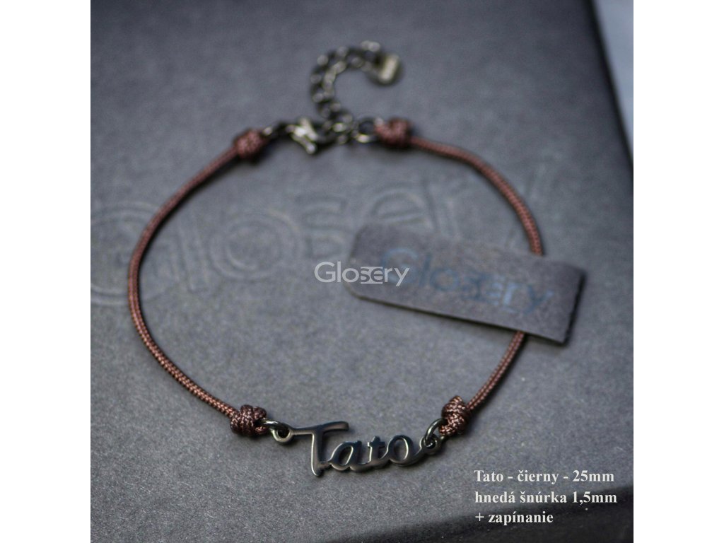 Minimalistický pánsky Glosery náramok zdobený nápisom Tato. Šnúrka je dostupná v rôznych farebných prevedeniach a vo veľkosti 1mm a 1,5mm. Výhodou Glosery šnúrkového náramku je to, že sa nosí "nonstop" - nevadí mu voda a všetky bežné činnosti počas celého dňa. Náramok je so zapínaním -jednoduché rozopínanie, pevnosť, odolnosť, možnosť predĺženia až o 2,5cm pomocou predlžovacej retiazky. Veľkosť náramku je prispôsobená na mieru podľa veľkosti zápästia + možnosť predĺženia. * kľúčové slová (nie je na predaj) tata, otec, tatinko, mama, rodinka, rodina, tatko, otec, ocko, ocino