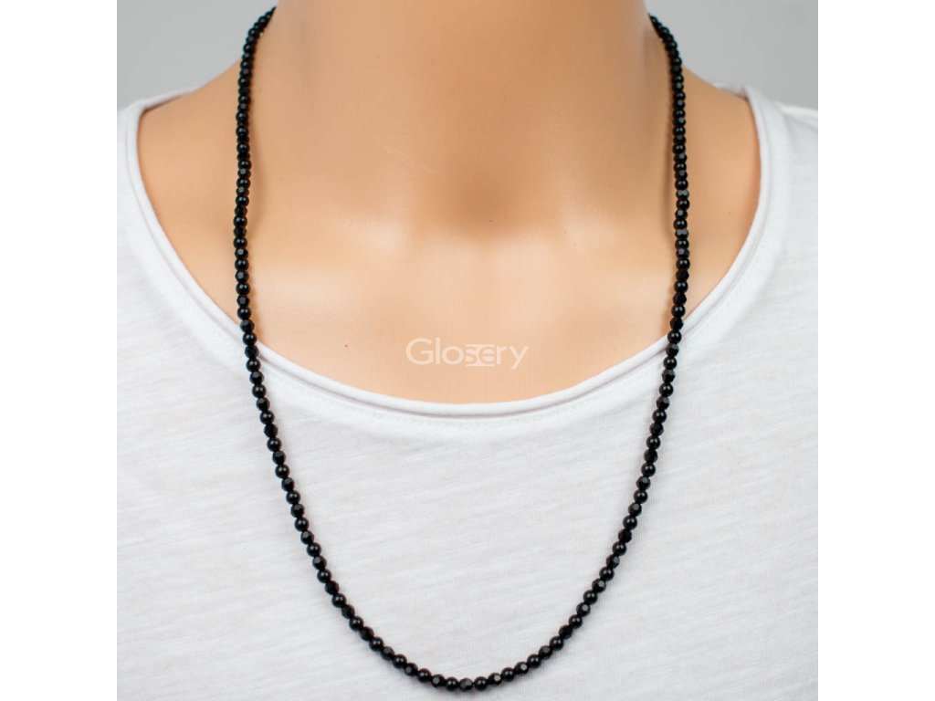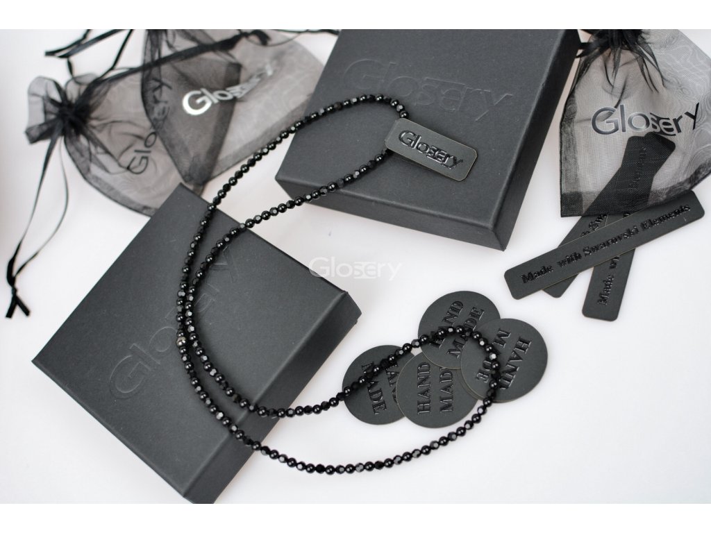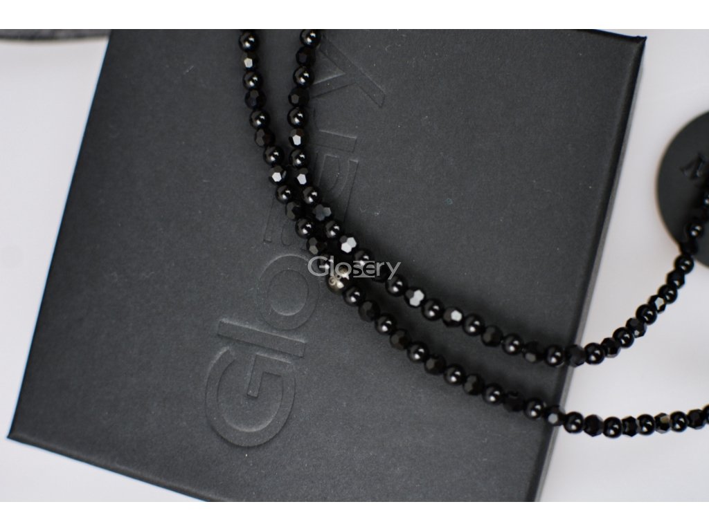 Výnimočný Glosery náhrdelník s lesknúcimi krištáľmi v tvare disko gúľ od Swarovski® po celej dĺžke náhrdelníka. Náhrdelník sa skladá z leského / matného čierneho achátu 4-6mm v kombinácii so Swarovski krištáľmi. Náhrdelník je ukončený čiernou korálkou z chirurgickej ocele s logom Glosery.