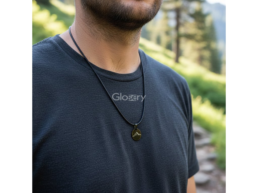 Šnúrkový Glosery náhrdelník zdobený príveskom s horami, ktorý je z chirurgickej ocele. Prívesok je umiestnený voľne v strede. Výhodou Glosery šnúrkového náhrdelníka je to, že sa môže nosiť "nonstop". Dĺžka náhrdelníka je 55cm s možnosťou predĺženia o 10cm. Taktiež je možné utiahnutie aj do kratšej dĺžky ako je 55cm. Na fotkách je náhrdelník so šnúrkou 2mm.