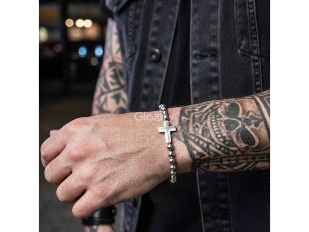 Elegantný náramok Glosery z chirurgickej ocele s lesklým povrchom a jemným krížikom ako symbolom viery, sily a ochrany. Nadčasový dizajn dopĺňa kvalitné karabínkové zapínanie s nastaviteľnou dĺžkou pre pohodlné nosenie.