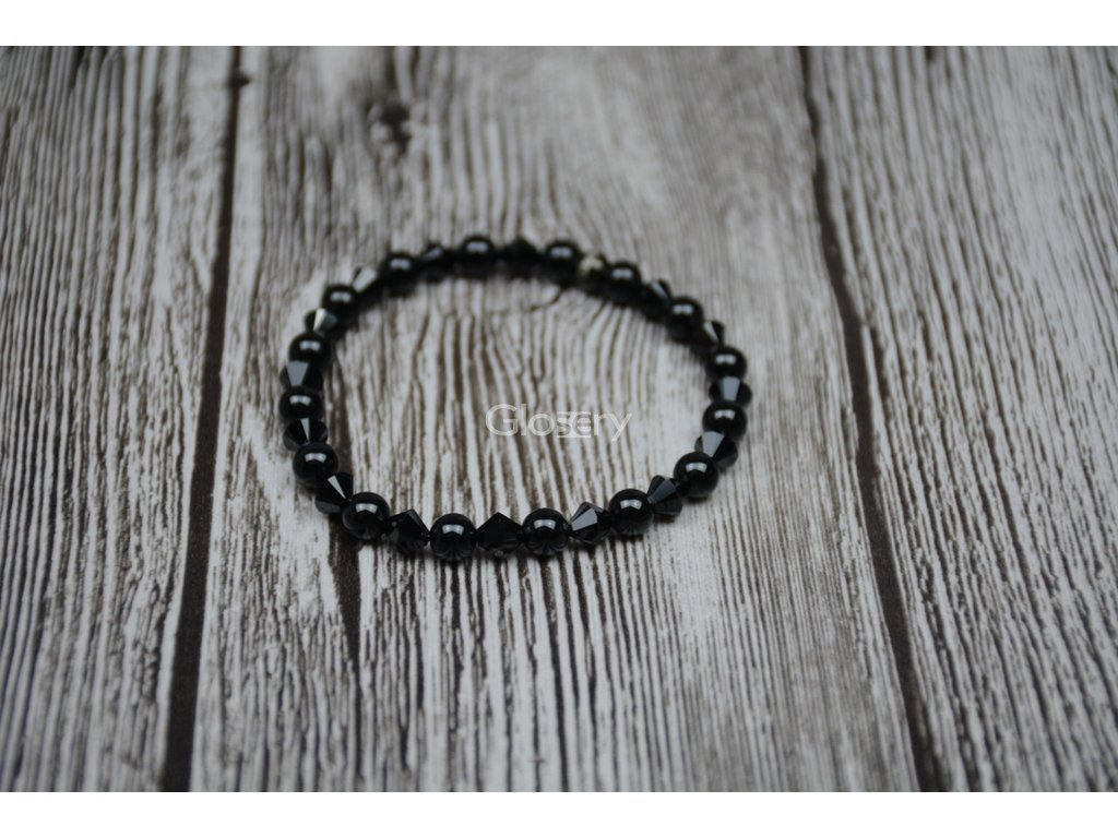 Unisex Glosery náramok vyskladaný z minerálov a zdobený lesknúcimi krištáľmi od spoločnosti Swarovski®. Náramok je zakončený čiernou korálkou z chirurgickej ocele s logom Glosery.