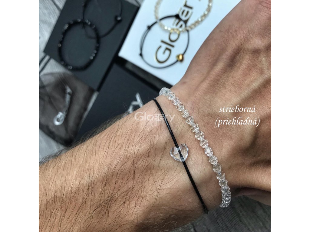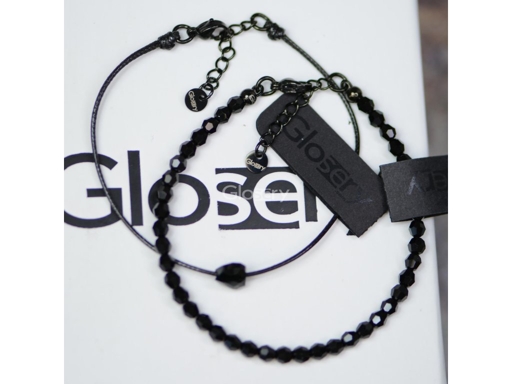 Elegantný a decentný Glosery set dvoch náramkov. Súčasťou balenia sú dva Glosery náramky - šnúrkový s kríštáľom od Swarovski a jeden kompletne vyskladaný z krištáľov, ktorí spoločne vytvárajú jedinečný set. Náramky sú označené logom Glosery. Na výber sú rôzne farebné kombinácie prvkov (Swarovski® krištále) - čierna, zlatá, strieborná.