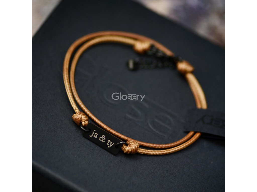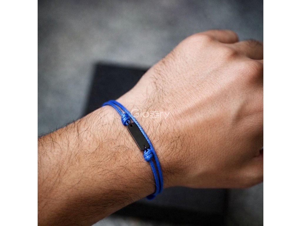 Glosery unisex šnúrkový náramok s mini platničkou z chirurgickej ocele, šnúrka 1mm a 1,5mm