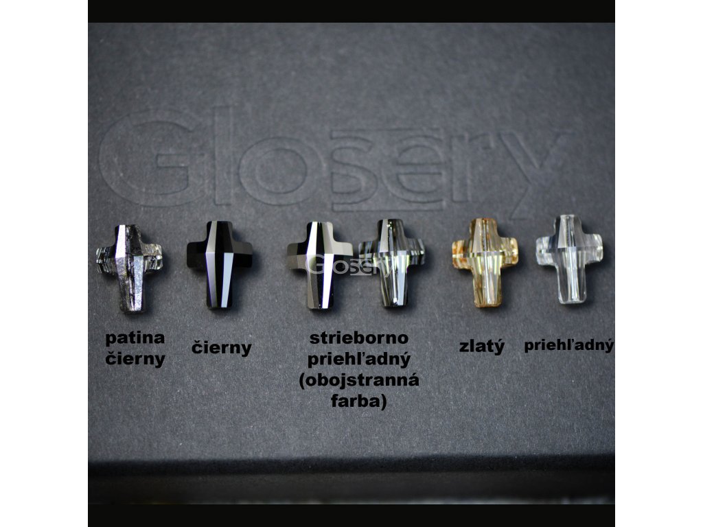 Unisex Glosery wrap náramok vyskladaný z lesklého / matného čierneho achátu v kombinácii so stopermi z chirurgickej ocele. Náramok je zdobený lesknúcim krištáľom od spoločnosti Swarovski® v tvare krížika v rôznych farbách. Náramok je zakončený korálkou z chirurgickej ocele s logom Glosery.