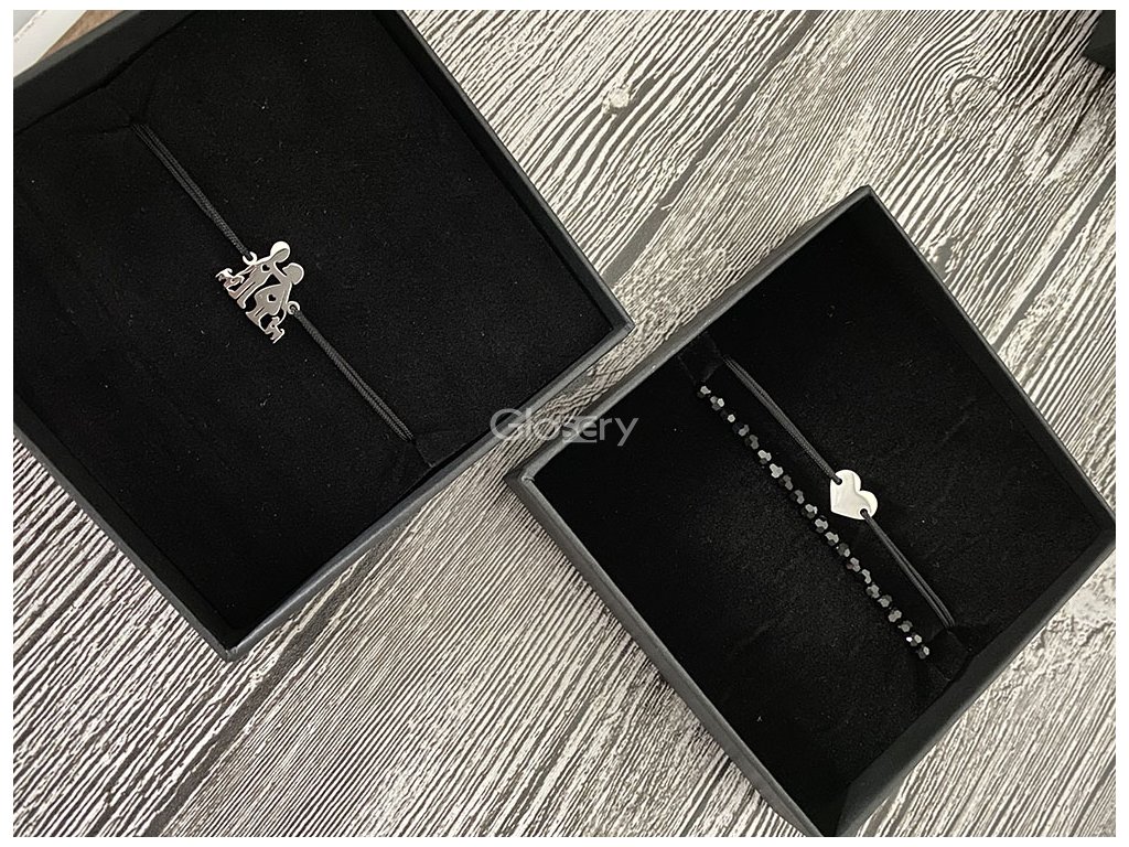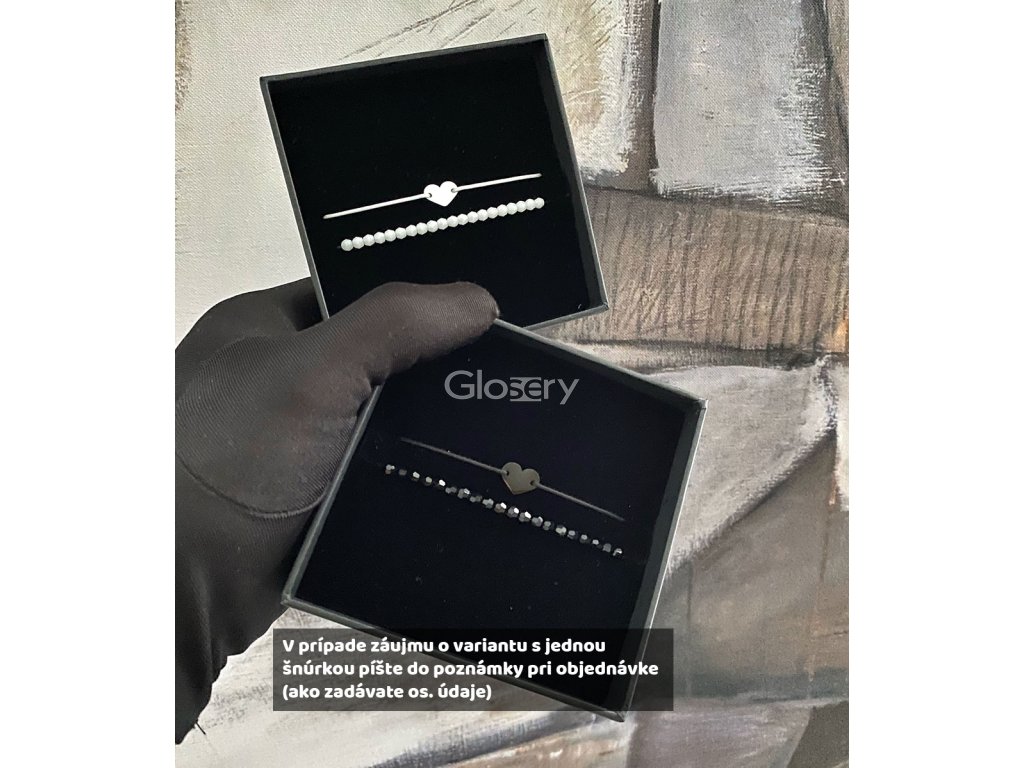 Luxusný unisex set dvoch minimalistických Glosery náramkov s mini srdiečkom. Druhý náramok je vyskladaný z krištáľov od Swarovski® v rôznych farbách. Tento set náramkov môžete nosiť ako symbol lásky, priateľstva, alebo len tak. Vhodné aj ako partnerské náramky. Prvok mini srdiečko je z chirurgickej ocele a šnúrka je dostupná v rôznych farebných prevedeniach. Výhodou tohto Glosery setu náramkov je to, že sa môže nosiť "nonstop" - náramkom nevadí voda a všetky bežné činnosti počas celého dňa. Veľkosť náramkov je prispôsobená na mieru podľa veľkosti zápästia + šnúrkový náramok je možné stiahnuť a roztiahnuť podľa seba. * srdce