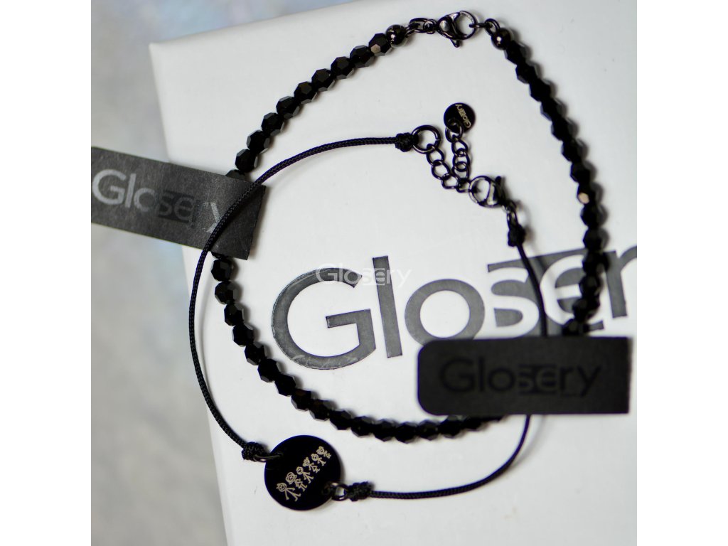 Luxusný set dvoch Glosery náramkov - personalizovaný s krúžkom a krištále od Swarovski® 4mm, chirurgická oceľ, šnúrka 1mm