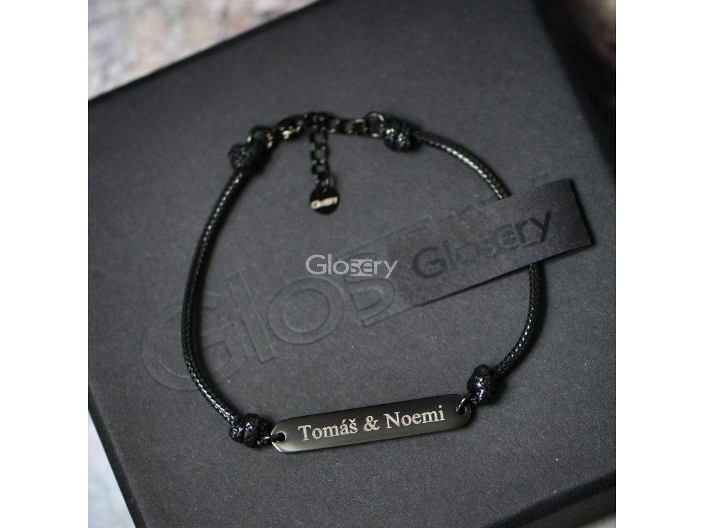 Glosery unisex šnúrkový náramok s platničkou z chirurgickej ocele, šnúrka 1mm a 1,5mm