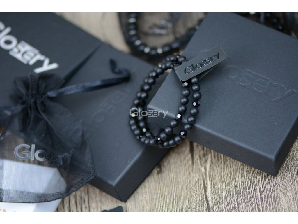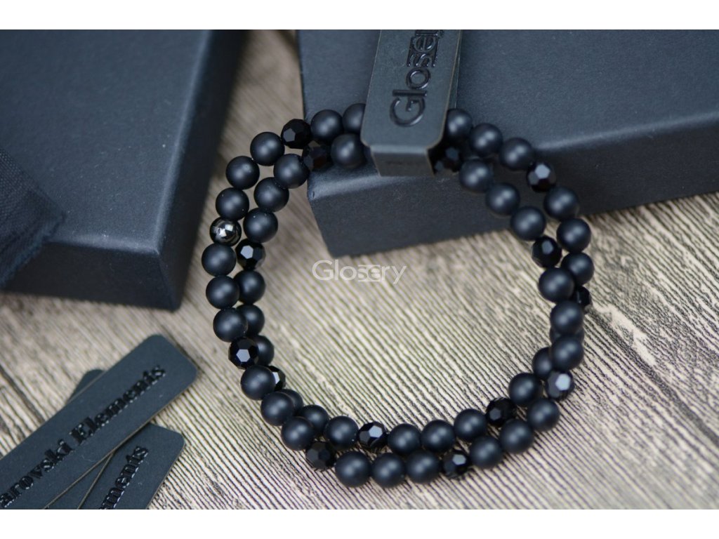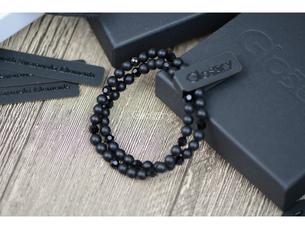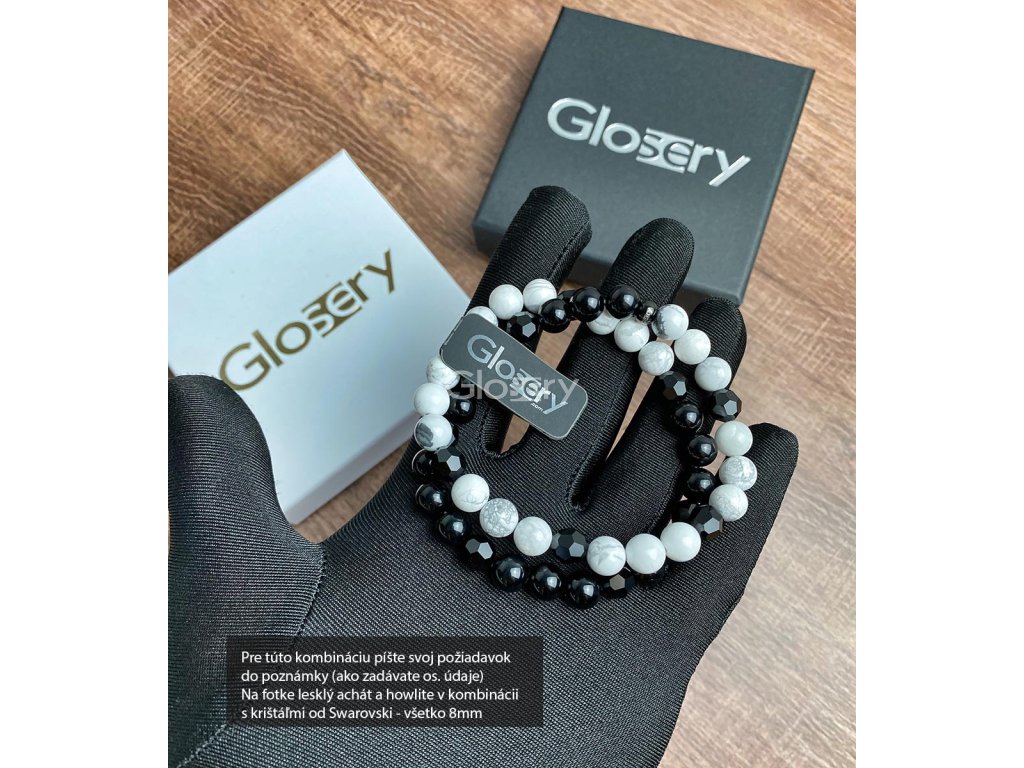 Unisex Glosery wrap náramok s lesknucími krištáľmi od Swarovski®. Náramok sa skladá z leského / matného čierneho achátu, labradoritu, howlite bieleho a lávového kameňa 4-8mm. Vždy ide o kombináciu so Swarovski kameňmi. Náramok je ukončený korálkou s logom Glosery.