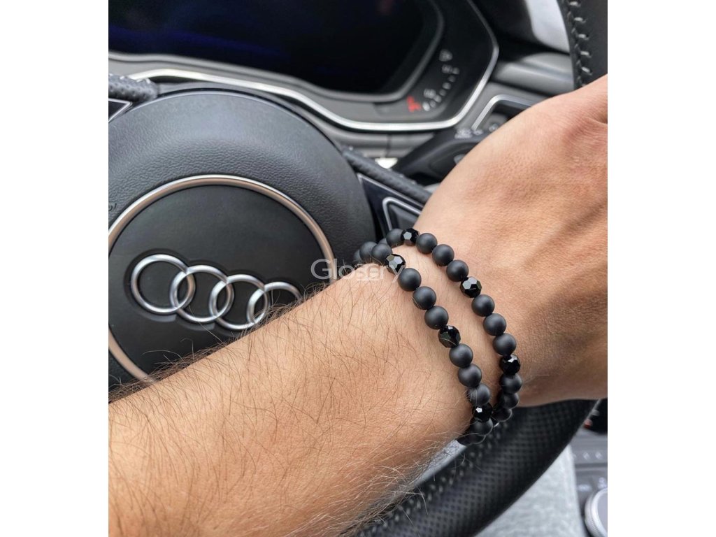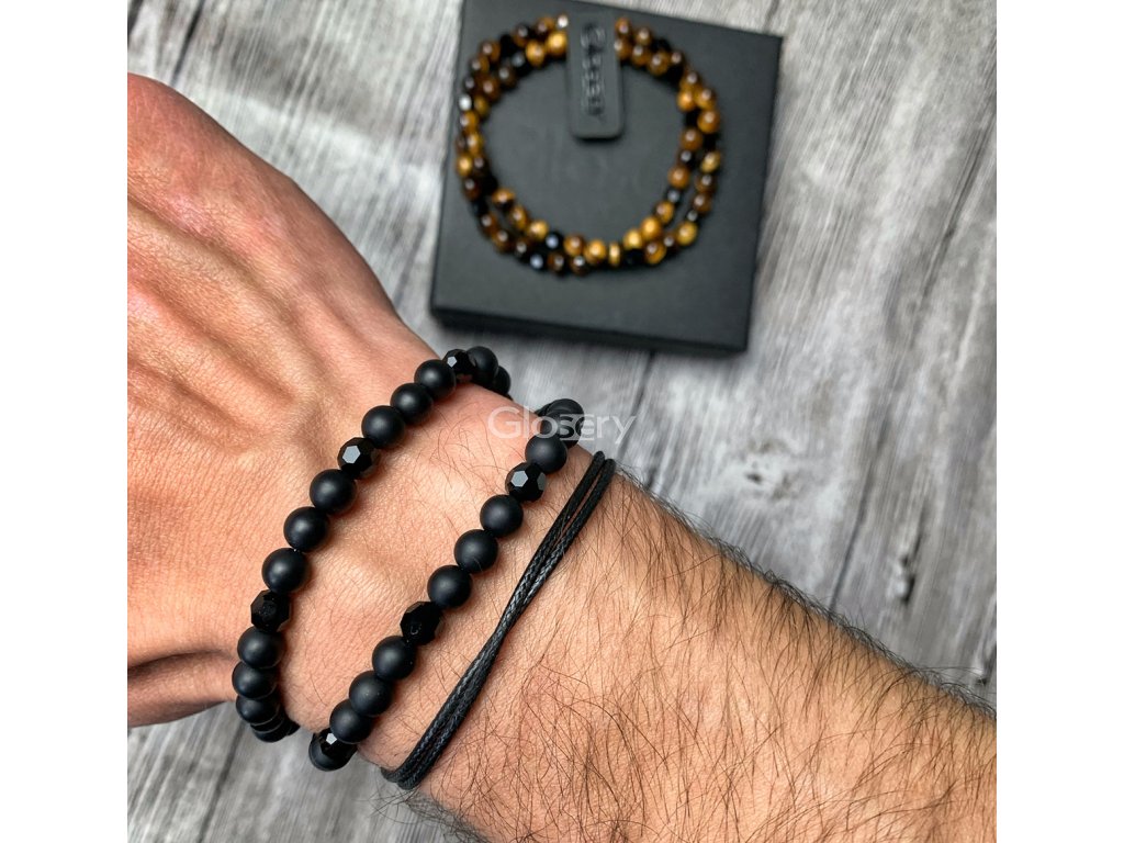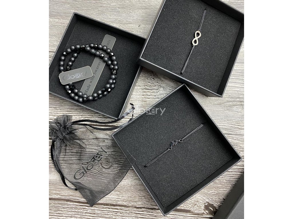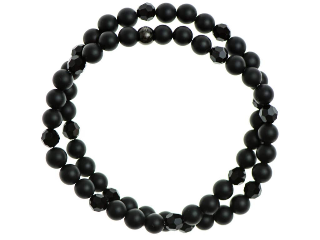 Unisex Glosery wrap náramok s lesknucími krištáľmi od Swarovski®. Náramok sa skladá z leského / matného čierneho achátu, labradoritu, howlite bieleho a lávového kameňa 4-8mm. Vždy ide o kombináciu so Swarovski kameňmi. Náramok je ukončený korálkou s logom Glosery.